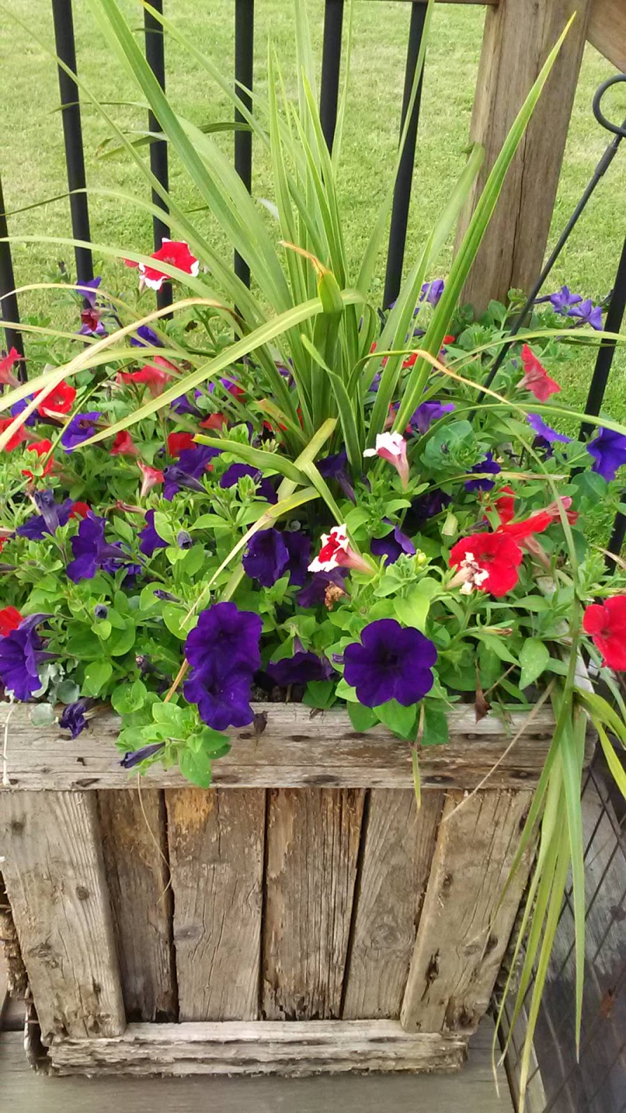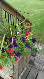 Deck plants. Mom had to buy a drill last week, so she could put more holes in the pots. After three different men looked at the drill and couldn't get it to work, the 15 year old grandson came over, and in about 3 min. had it working. New tech crap is what dad said, Mom didn't say a word.