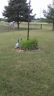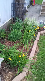 These are for you flower loving peoples out there. Daylilies, and Moms cutting garden. The zinna's and cosmo's are finally starting to bloom. Mom says she needs more mulch and more weeding done. We say she needs to spend MORE time wif just us.