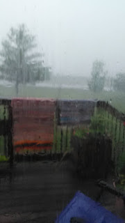 It rained, and hailed, and blew winds..............then the sun came out, it hailed again, and it stopped. It was done. WHEW we made it through our first tornado.