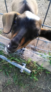 This is "little bill". He is a whether goat, which means he cannot be a daddy. He loves cookies also. He is a big baby, Dad brought him home when he was a little baby.