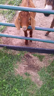 This is baby Lucky. He loves Piper and she loves him. He is part spanish and part fainting goat. He is odd cos he does not have any horns. He loves cookies also.