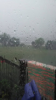 Last weeks rain storm, as Mom was leaving for work. We are in a drought so the rain was much needed. Today through next week in the high 90's, Looks like we will be staying in the house.